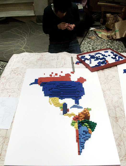 His project is very funny: a 3D cartogram about emigration and inmigration between american countries. But in true 3D: made with Lego pieces, as he explains, "to seize the space of the exhibition" and "allow you to watch teh cartogram from different perspectives".